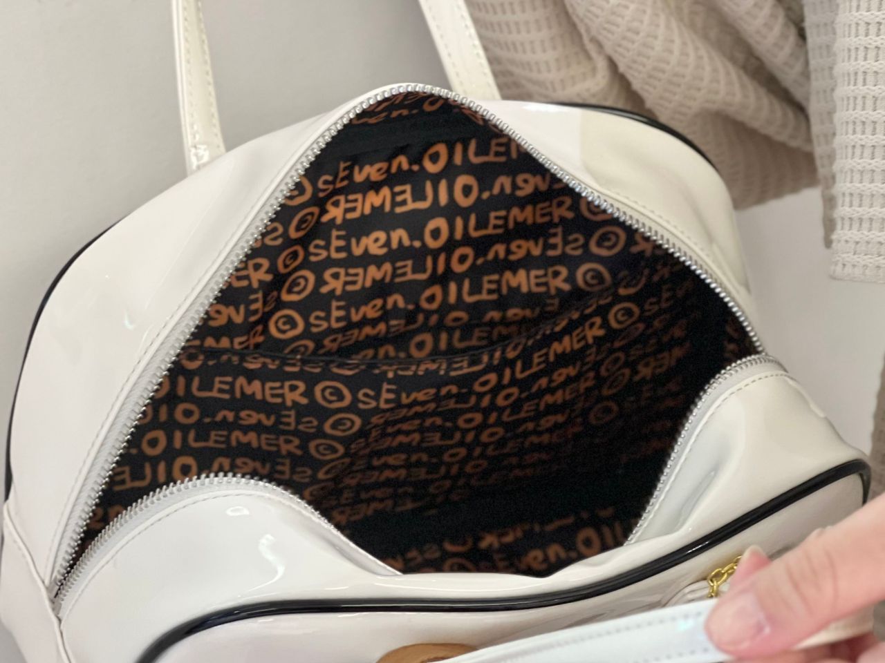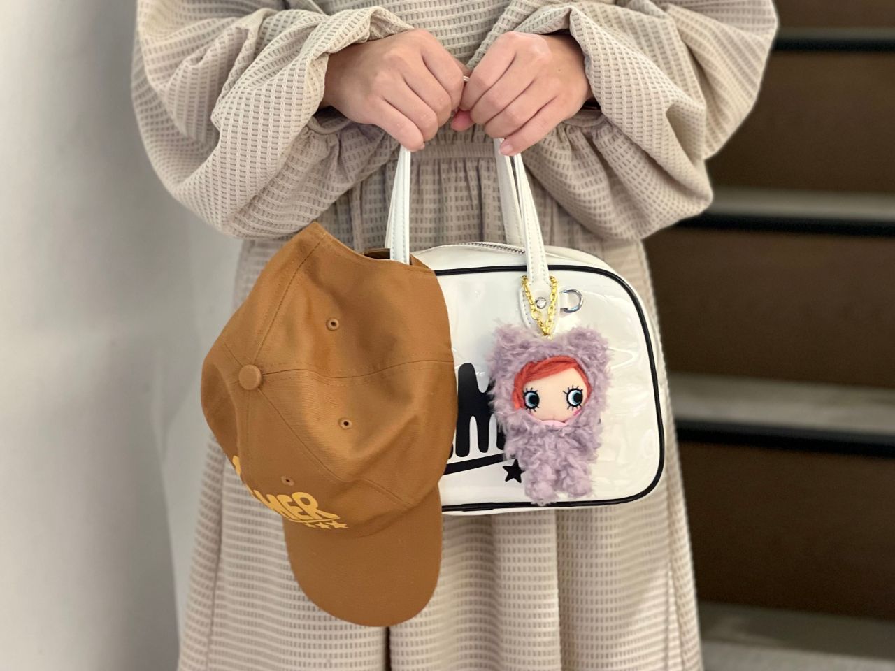 キャップをバッグに付けるアレンジも、上級なお洒落でおすすめです!バッグの内装にはILEMERのデザイナー「sEven.o(セブンオー)」の文字が♥