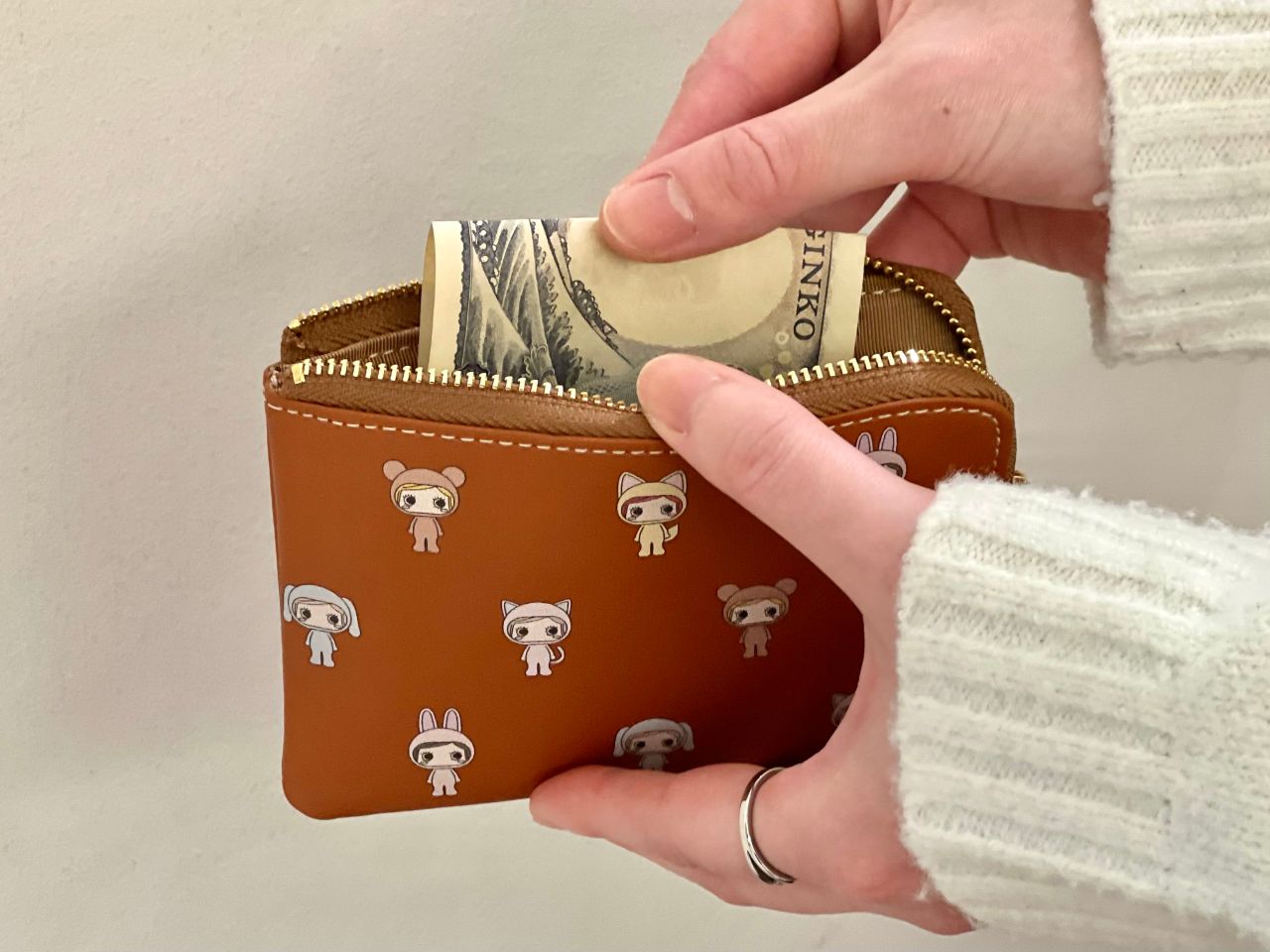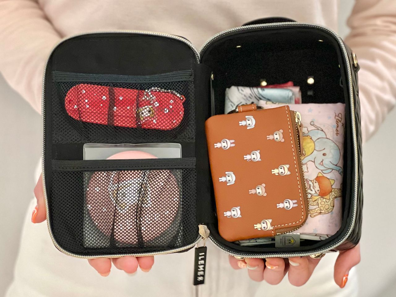 毎日使うお財布やポーチ、ハンカチが入ったセット★お財布はILEMERの隠れた名品で、すでに愛用中の方からは「使いやすくて便利」と嬉しいお声もたくさんいただいてます♪中はこんな感じです!お札は2つに折って収納が可能。