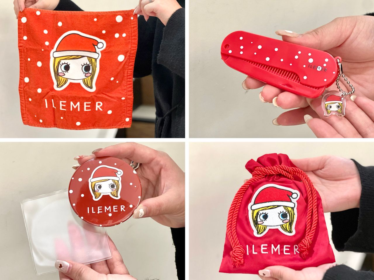 今回は予算が1~2万円ということで、クリスマス限定おめかしセットもセレクトしたのですが、こちらは4点セットとなっており、「ハンドタオル」「コーム」「ミラー」「巾着」がGET出来ちゃいます◎