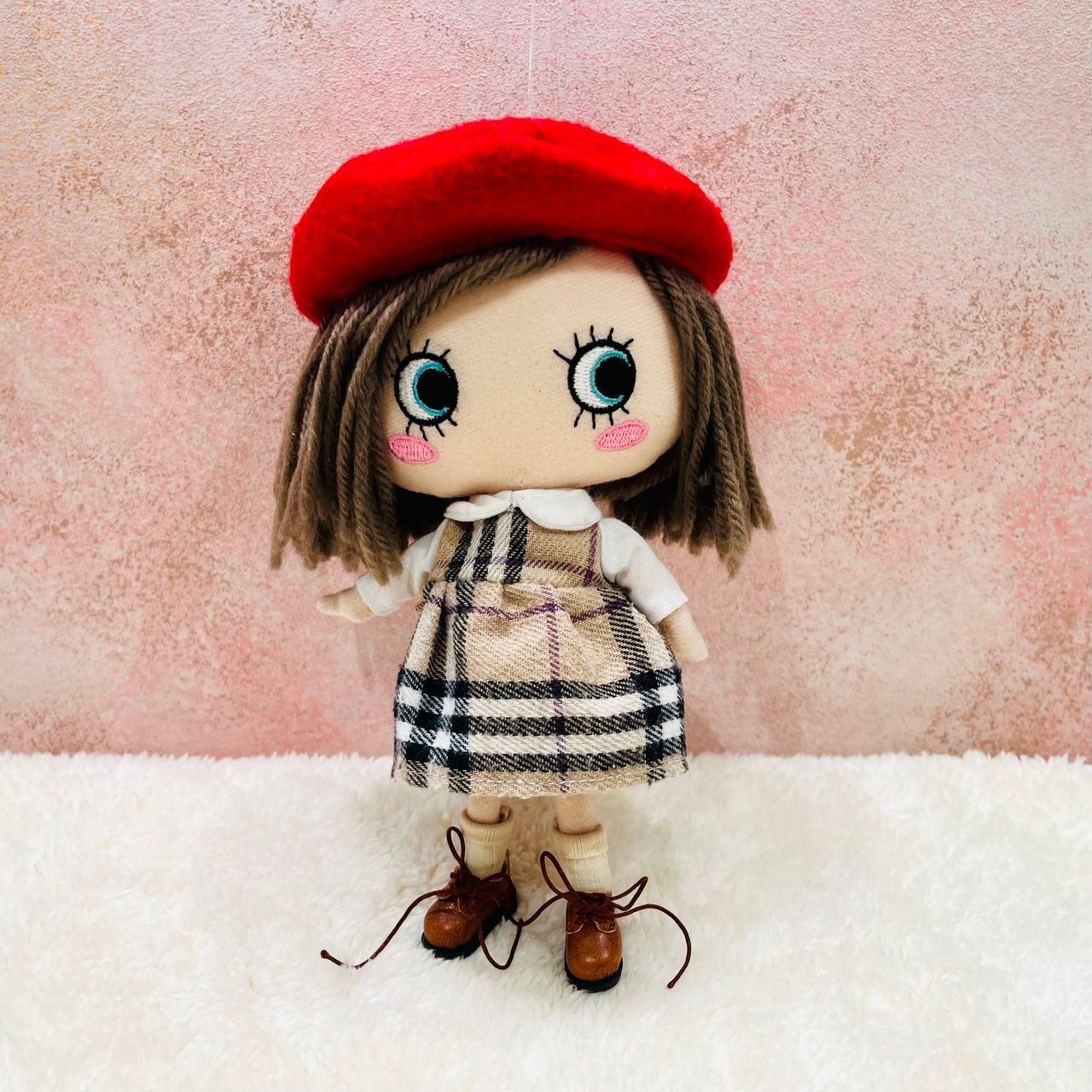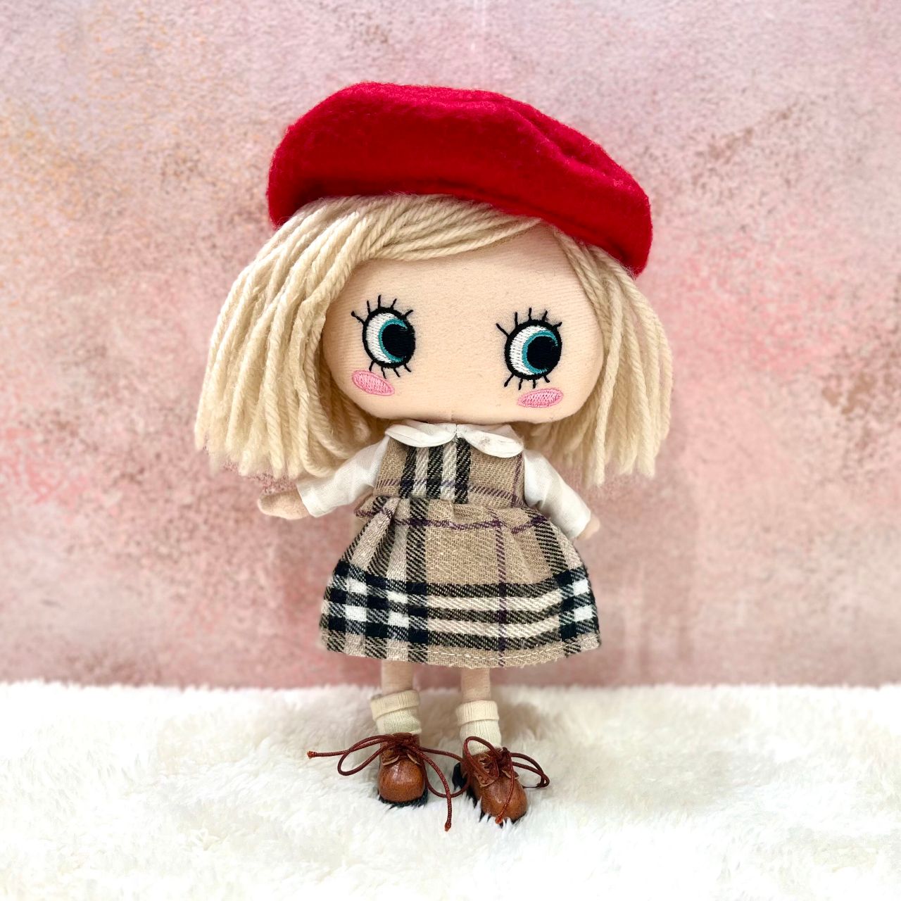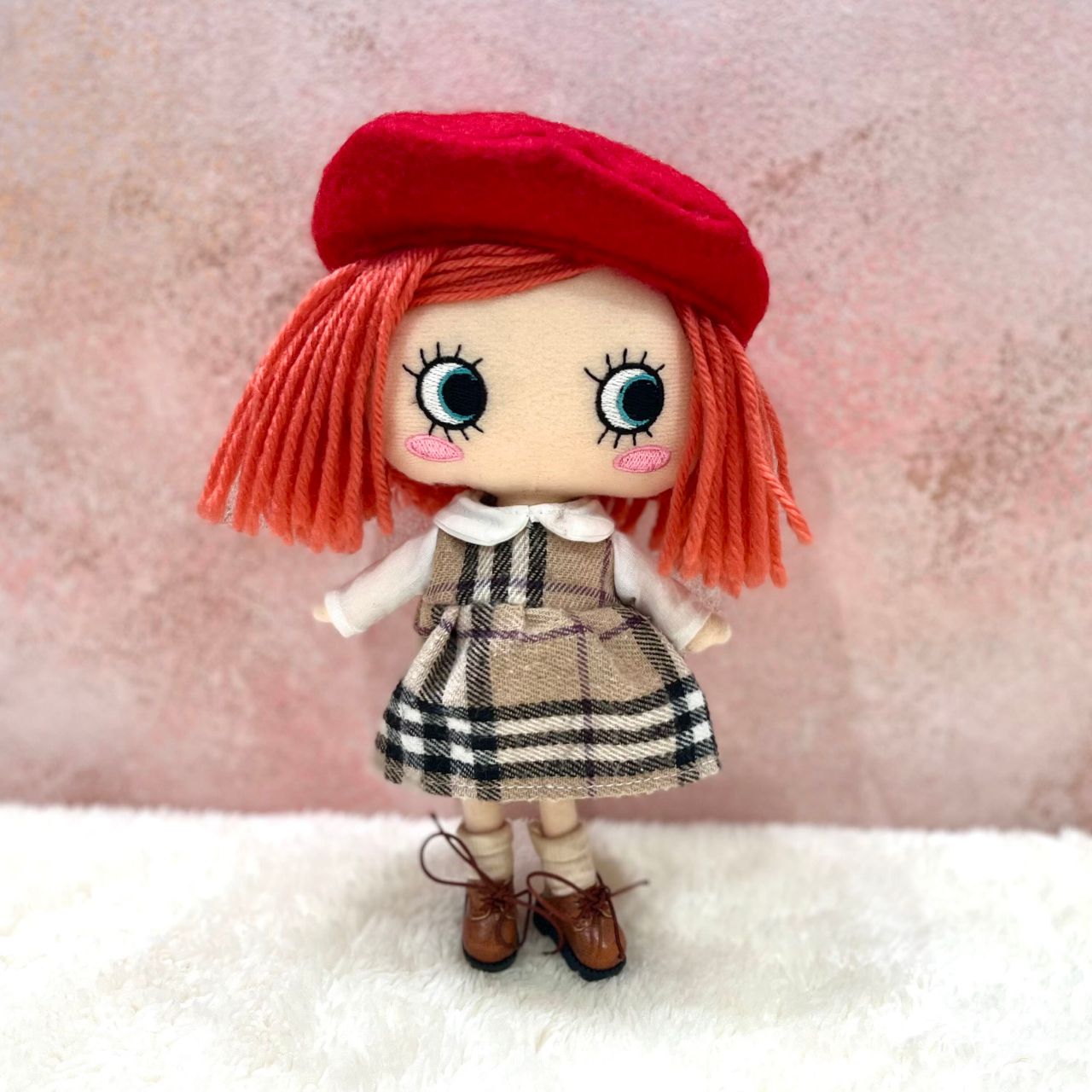 チェック柄の襟付きワンピースにベレー帽、さらにこちらは靴下とショートブーツまでセットになっております!この1セットで頭から足先まで全てのコーディネートアイテムが揃っちゃう!?