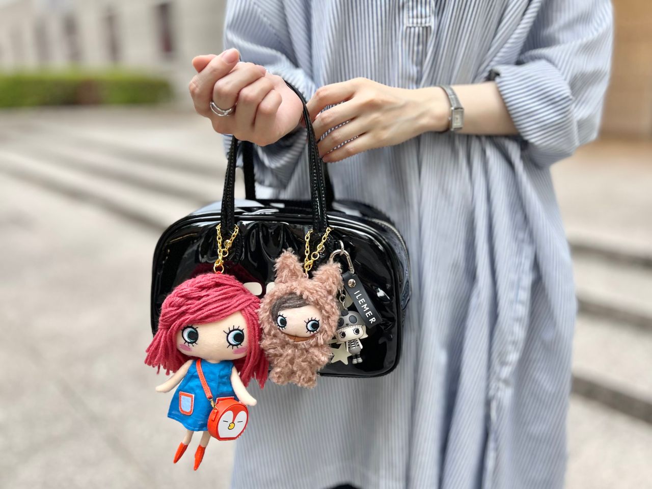 ILEMERでは、ブランドが出来た初期から発信しているバッグチャームのじゃら付け。最近では街中でも、キャラクターのチャームを重ね付けしている方を本当によく見かけるようになりました!