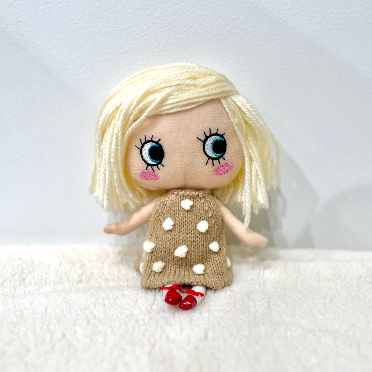 イアンヌちゃんもイーマリーちゃんと同じ、髪色がホワイトカラーとなっております!ピアスはクリスマスらしいグリーン°˖✧赤色のシューズがワンポイントでおしゃれですね♪