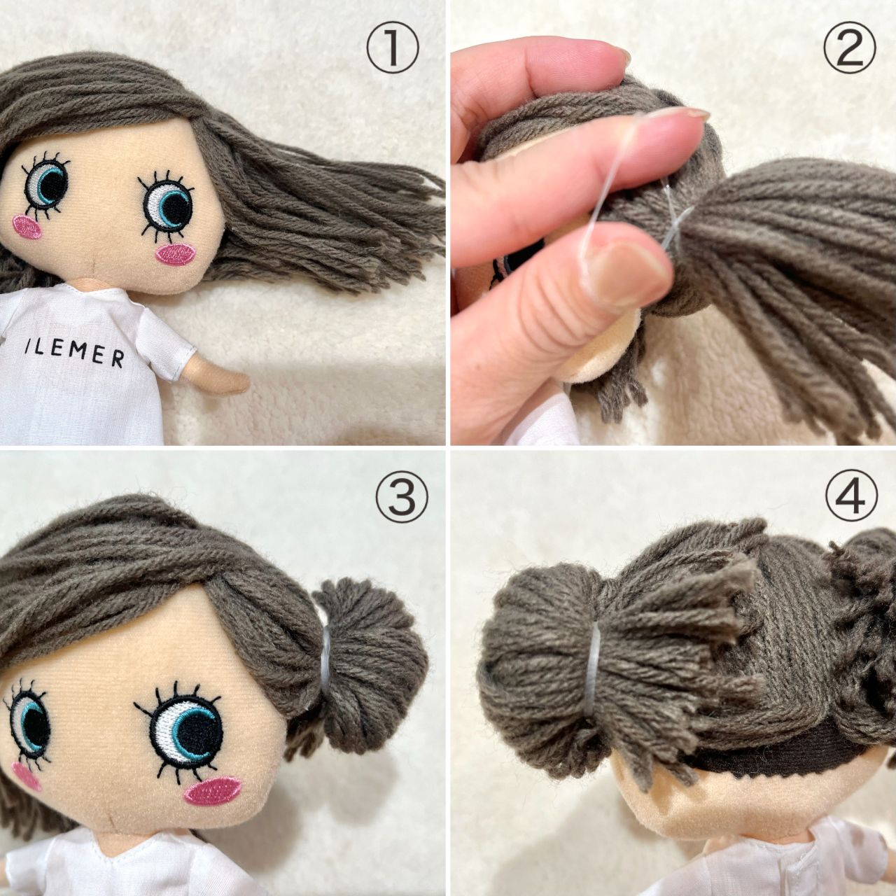 ➂最後の周で、後ろに畳むようにお団子を作ります。左右で同じお団子を作ったら完成!