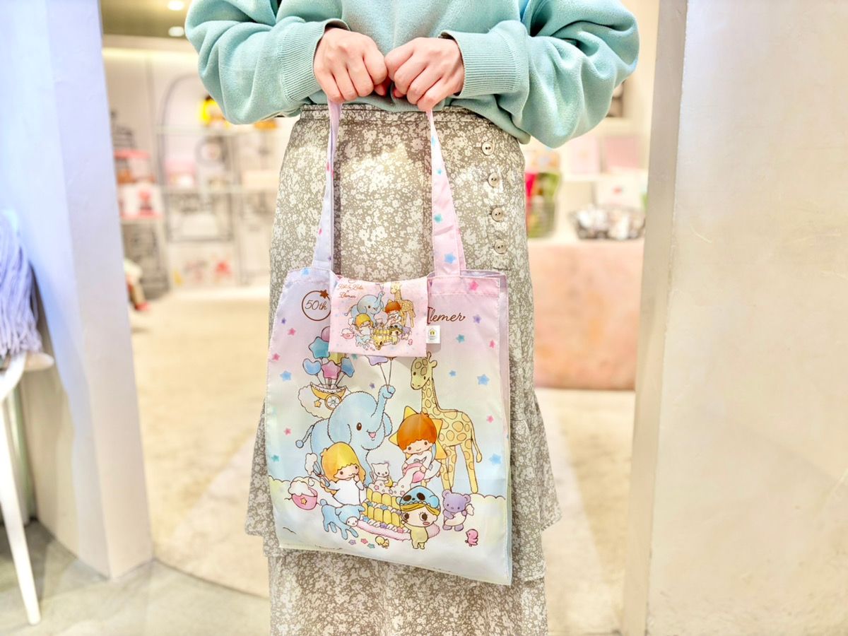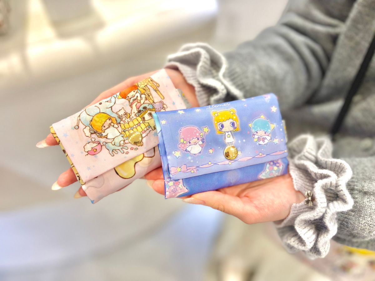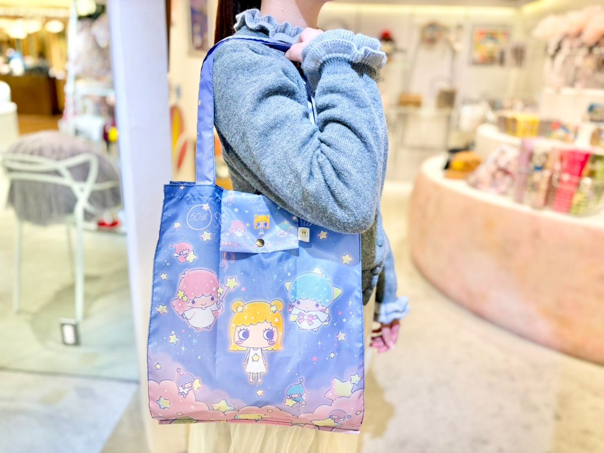 こちらもリトルツインスターズ キキ&ララとのコラボアイテム!ゆめかわいいデザインに可愛いが止まりません♡エコバッグは小さく折り畳んで持ち歩くことができますよ☆