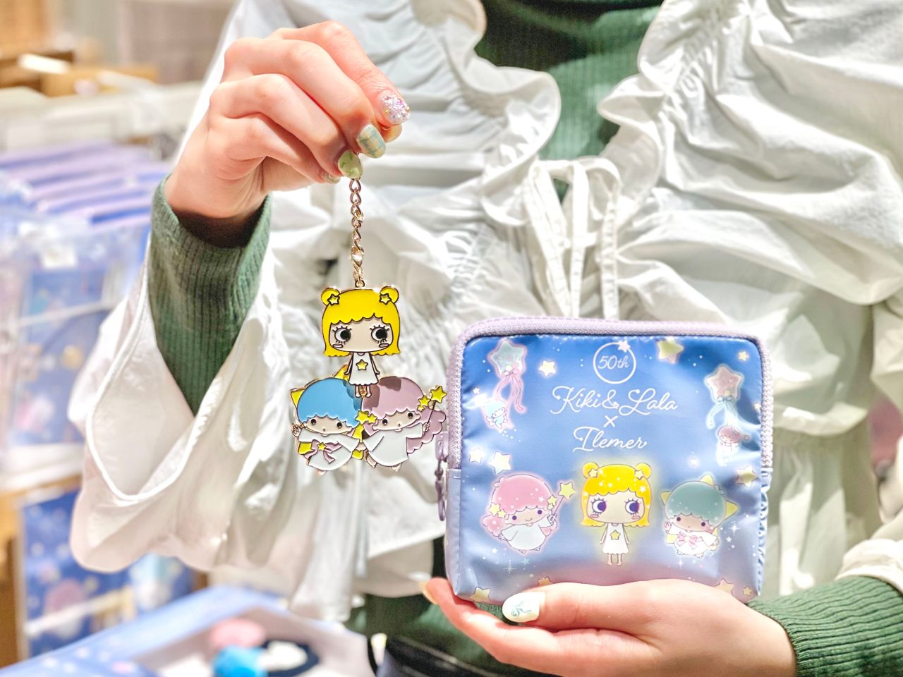 私のおすすめアイテムはキキ&ララコラボアイテムのチャームとpipiです★どちらもイーマリーちゃんの前髪がキキ&ララとお揃いなのがとっても可愛くてお気に入りポイント!ポーチは薄型に見えて内ポケットも付いているので、鏡や絆創膏を入れています。