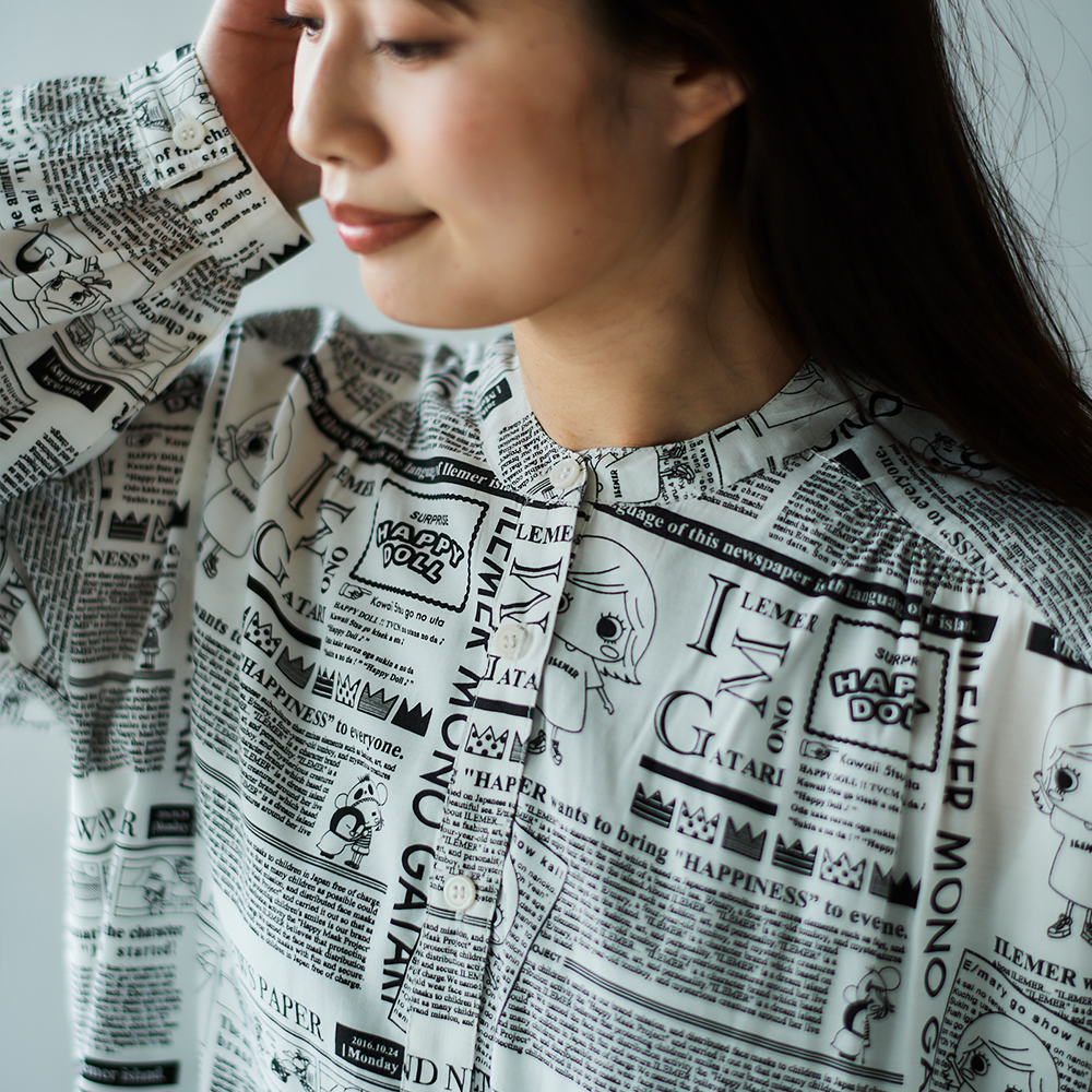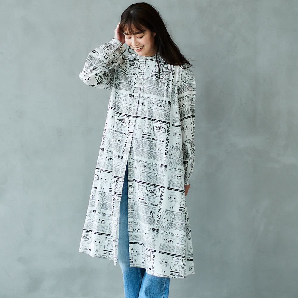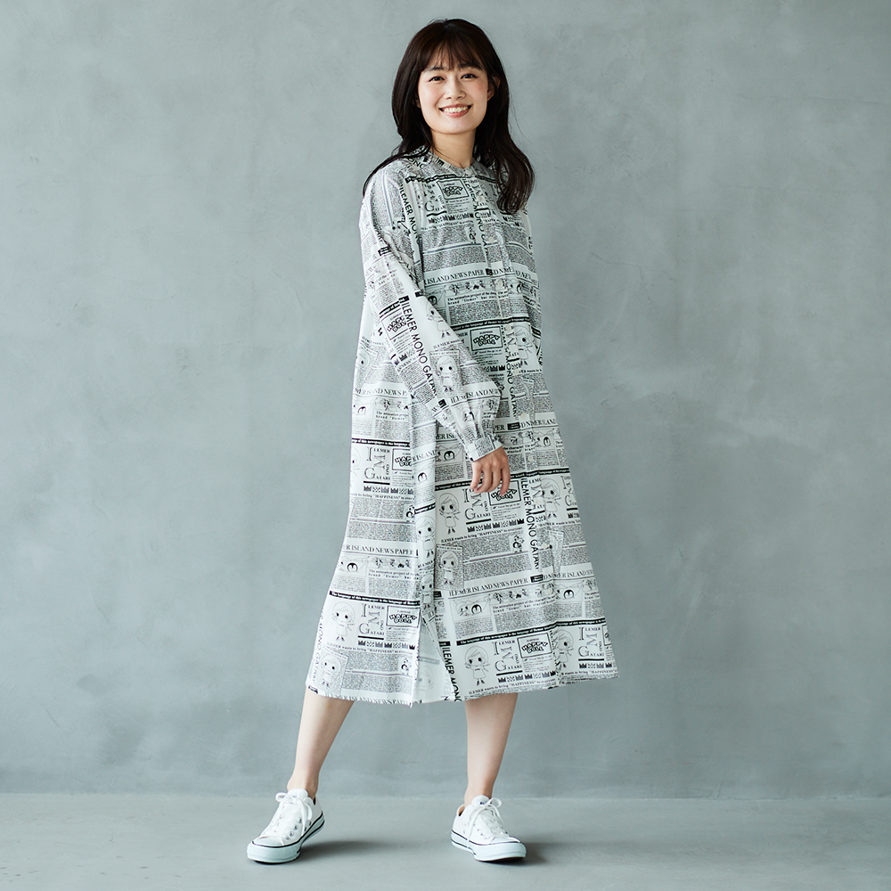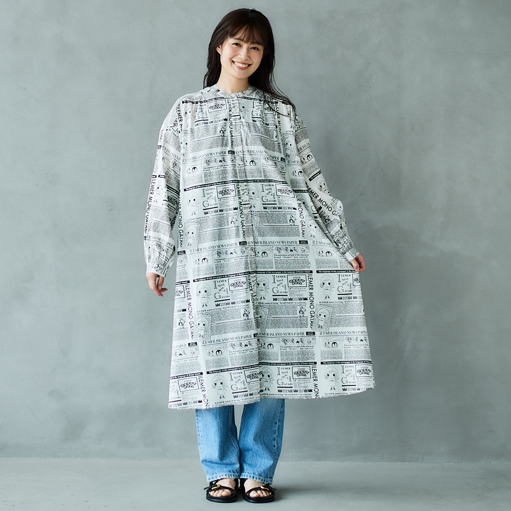 前回あっという間に売り切れてしまった、大人気ニュースペーパー柄の「羽織としても楽しめるワンピース」が、【襟なし】バージョンにリニューアルされて登場!