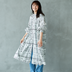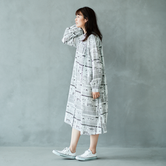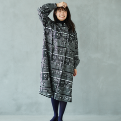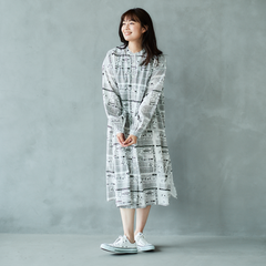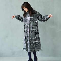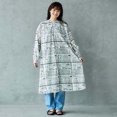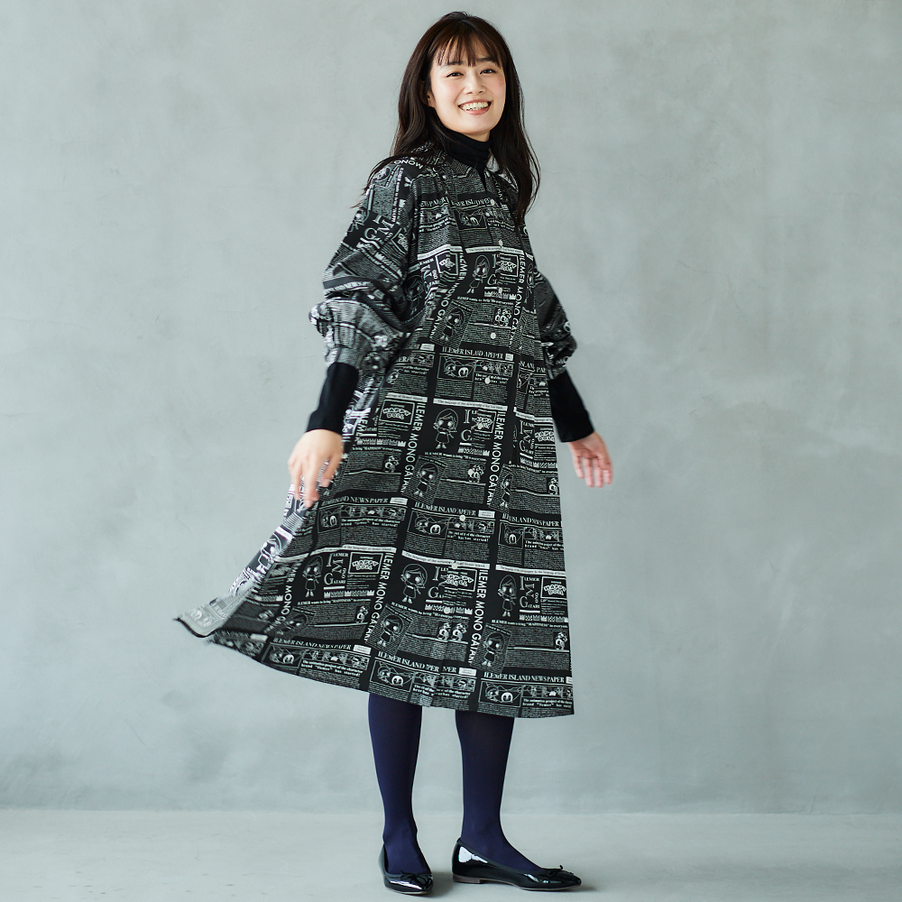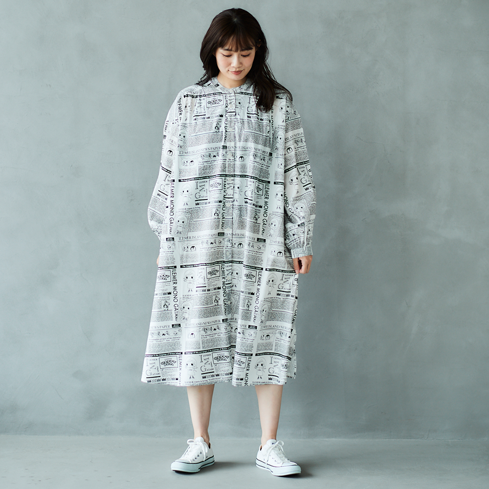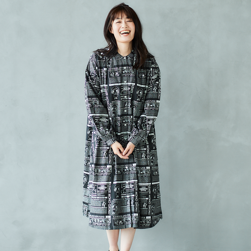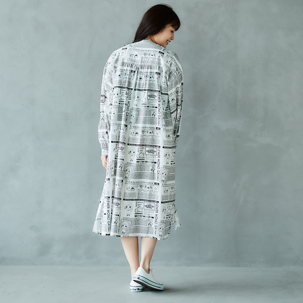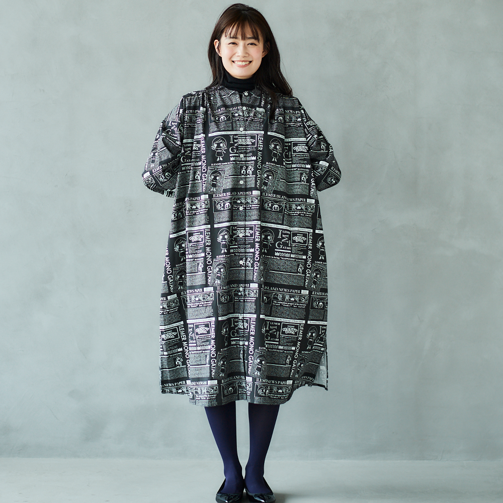 ニュースペーパ柄・ワンピース(襟なし)