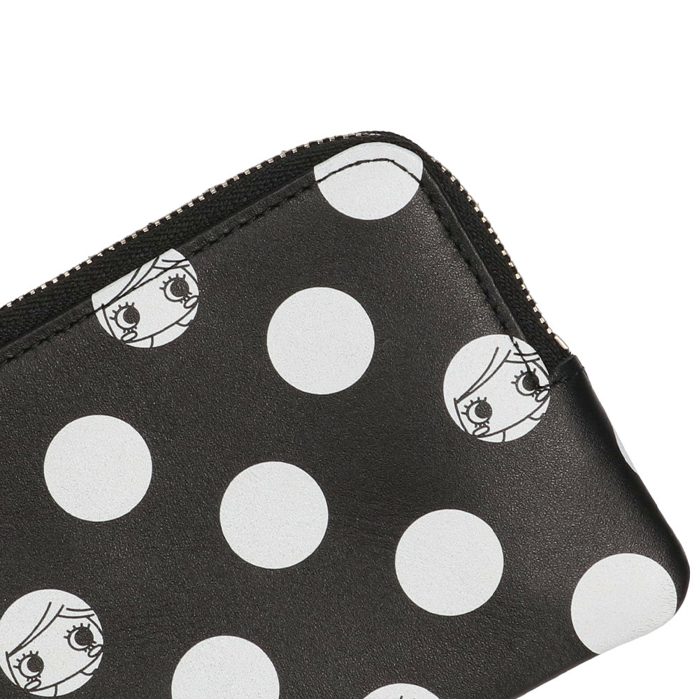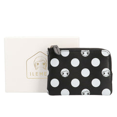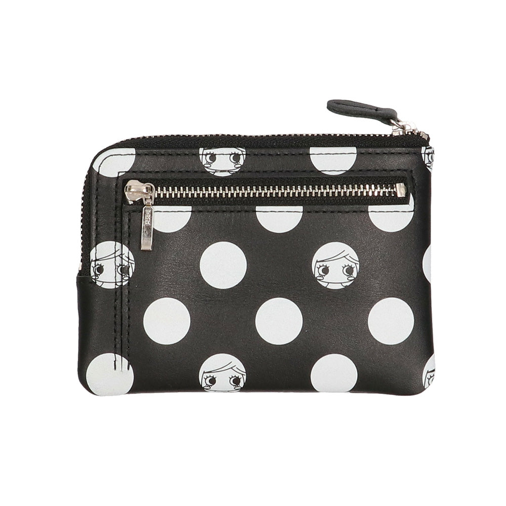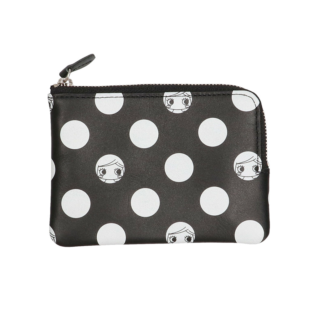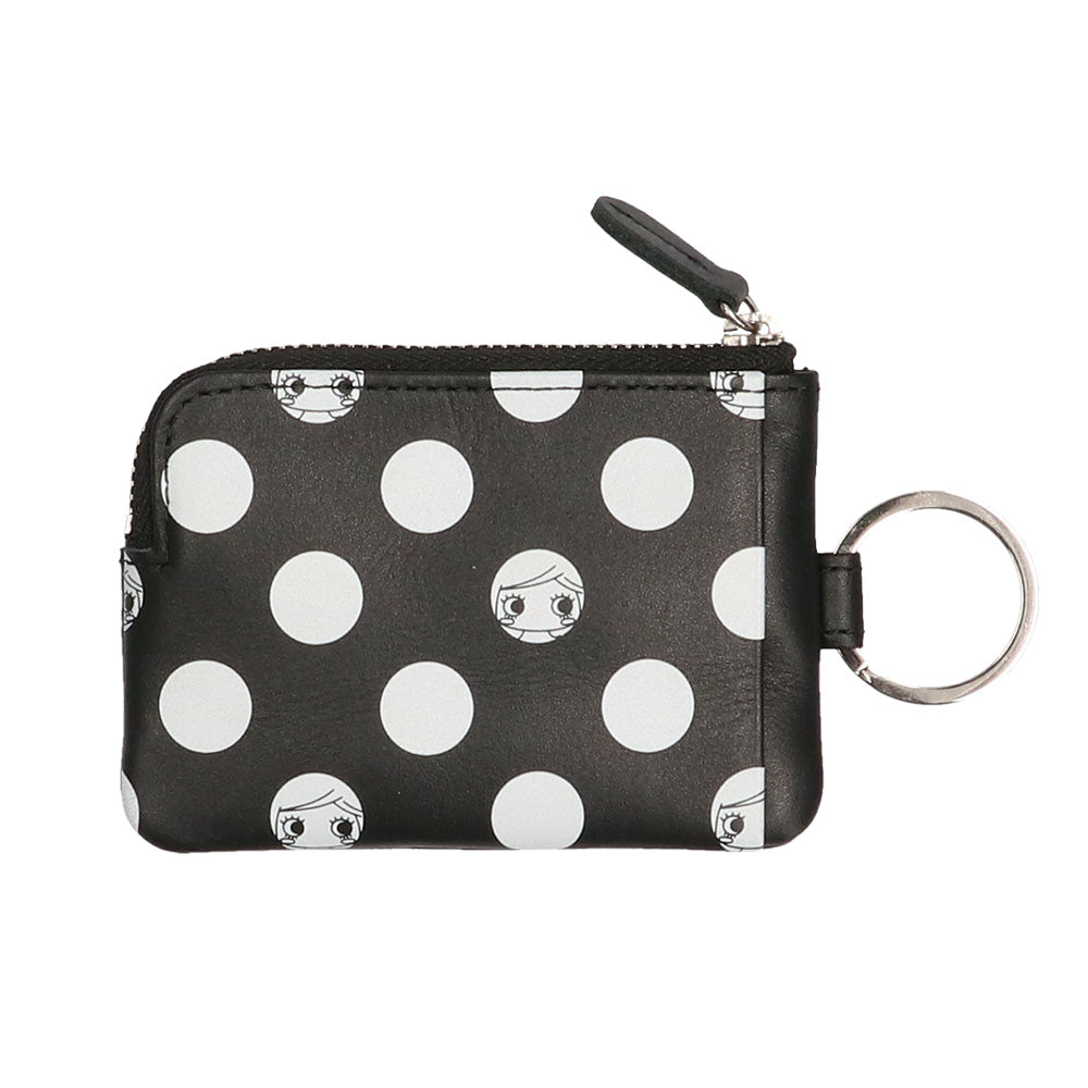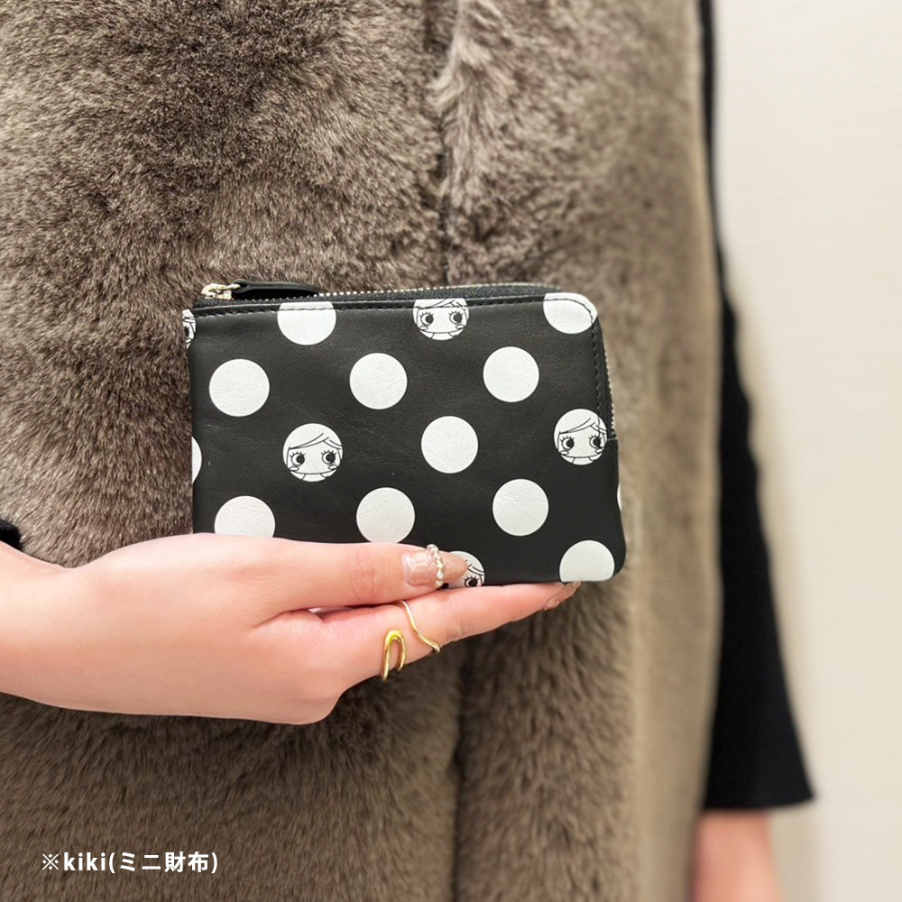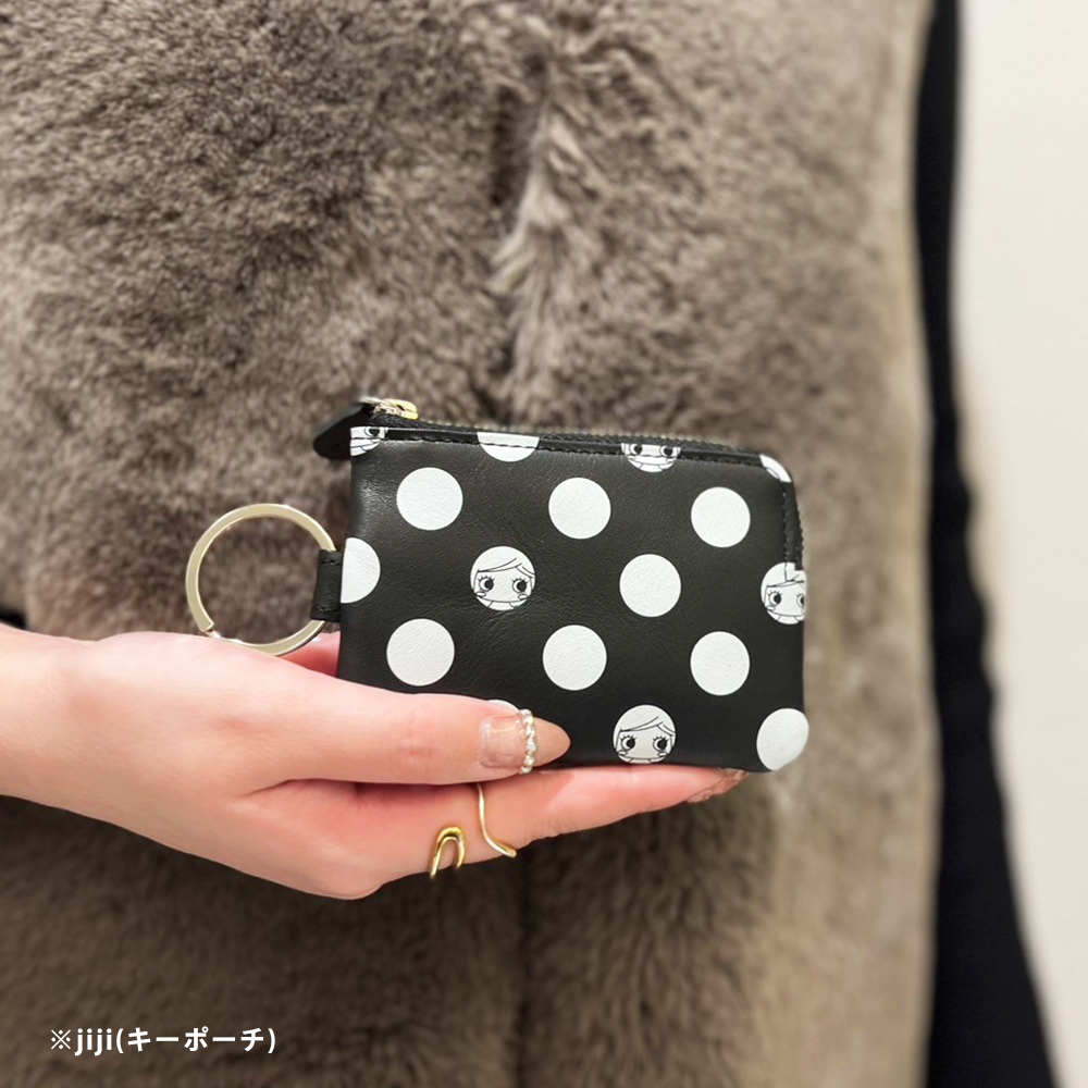 ドット柄から顔をのぞくイーマリーちゃんのお顔がとってもチャーミングなミニ財布『キキ』とキーケース『ジジ』が新登場!ブラックにホワイトドットのモノトーンデザインがモードで大人可愛いこちらのシリーズはユニセックスでお持ちいただけます♪