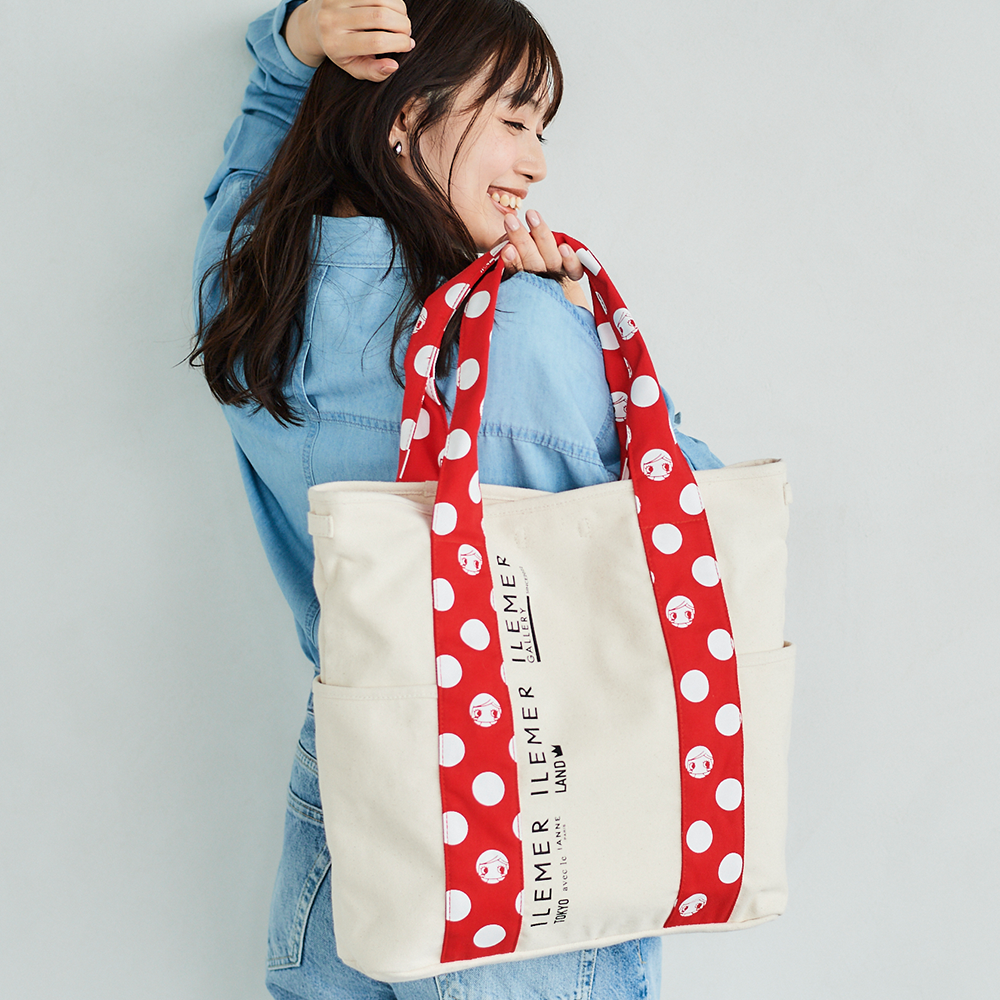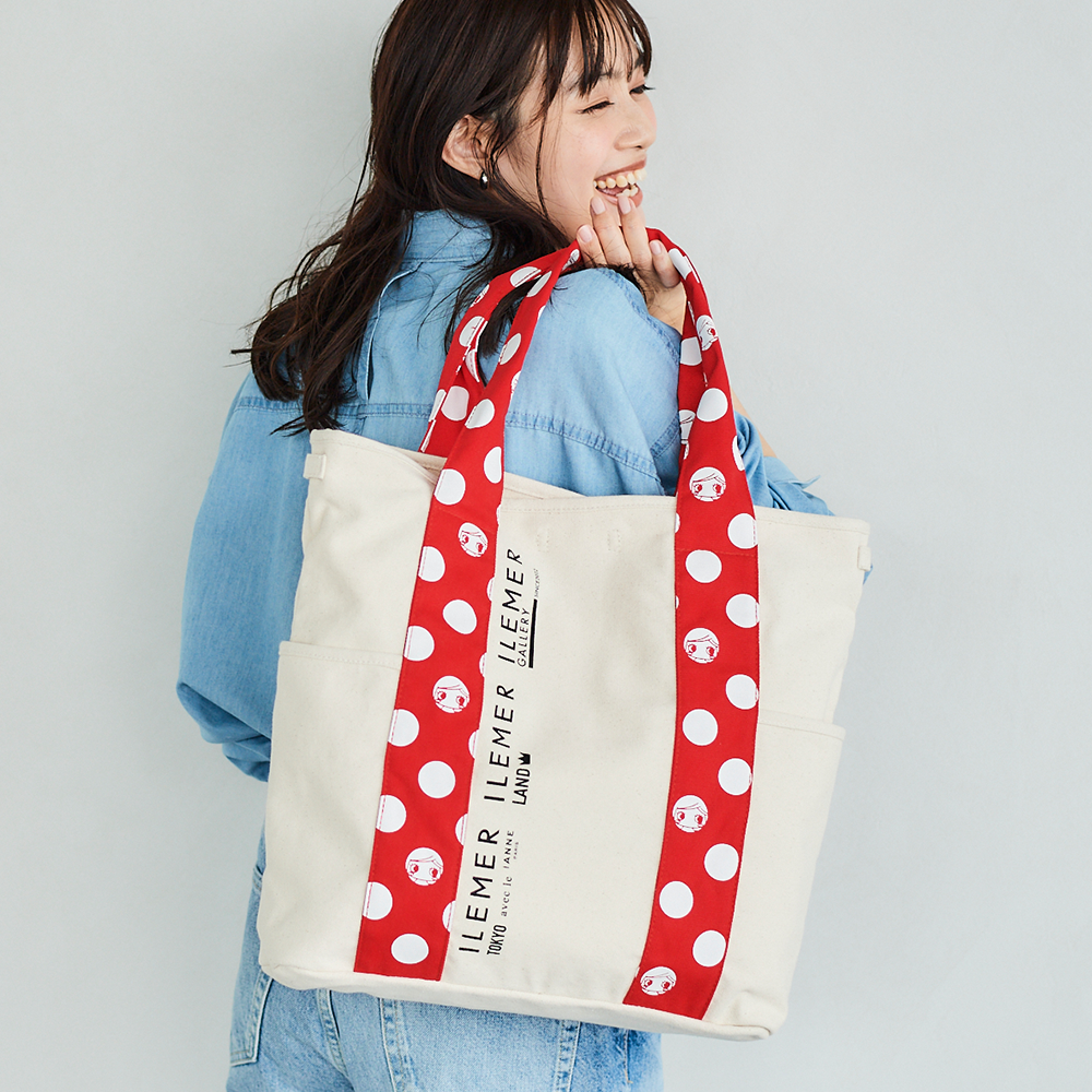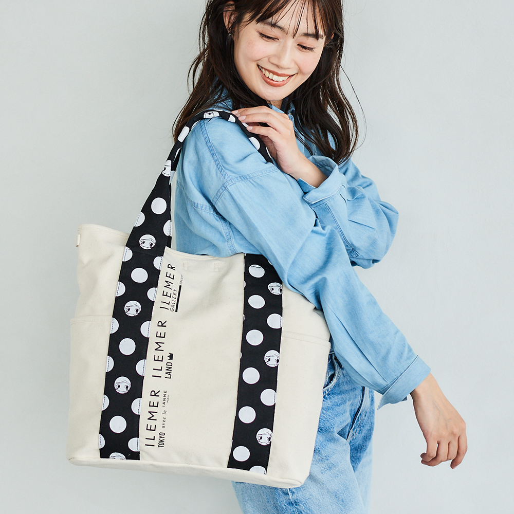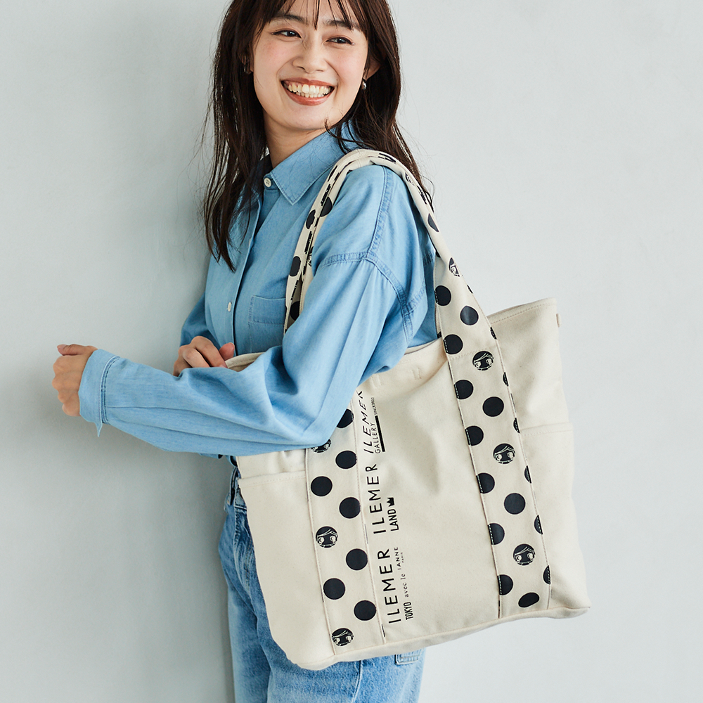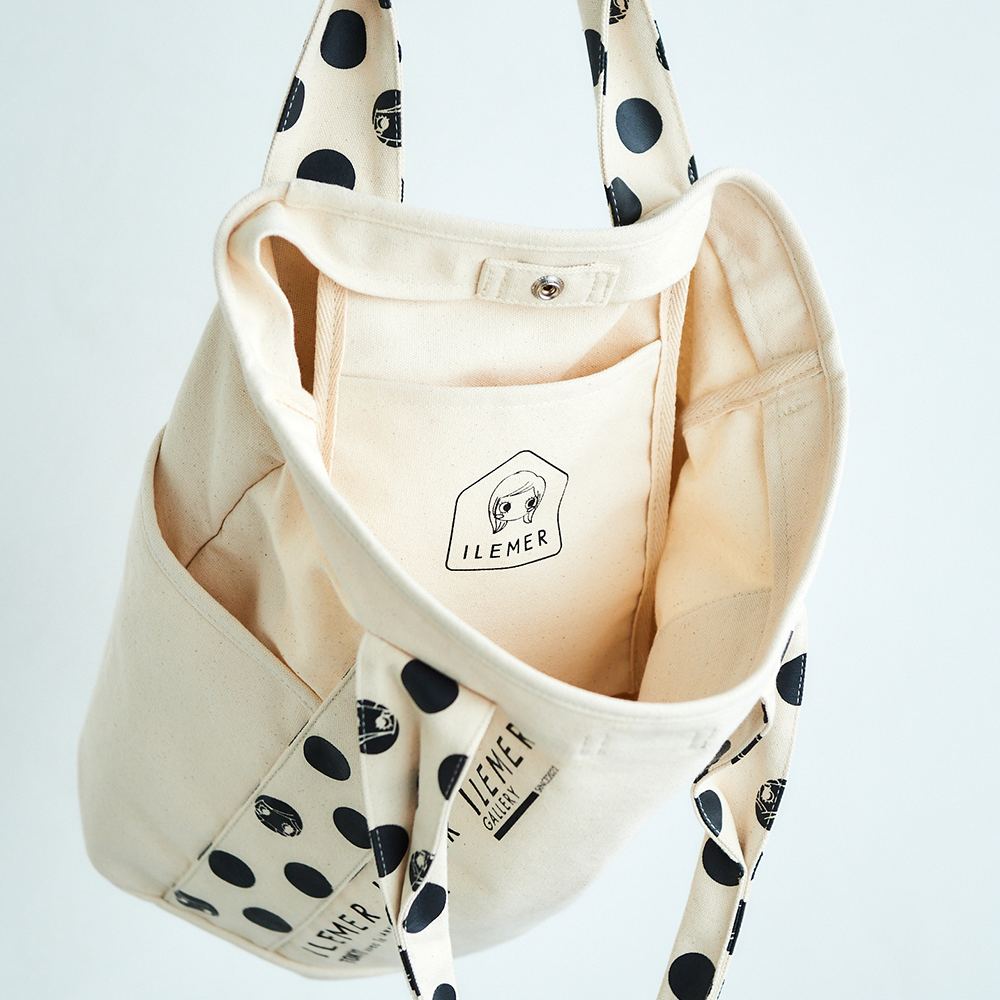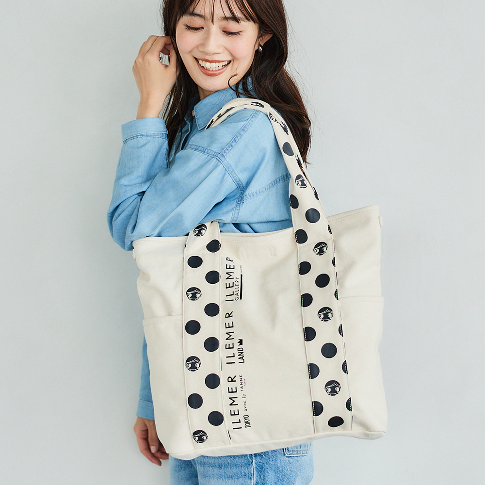 優しいナチュラルなキャンバス生地にドット柄ハンドルがポップに映えるILEMERらしいキャンバストート『KURUKURU』!