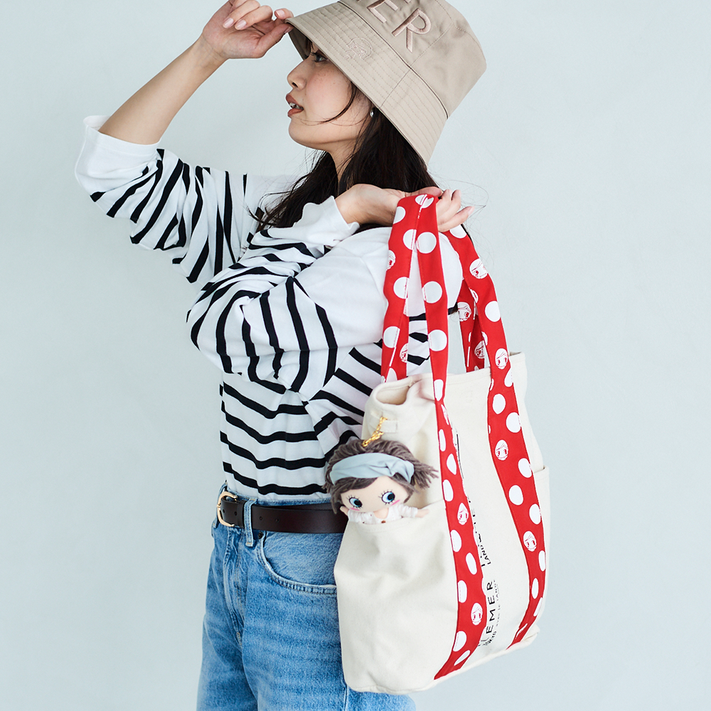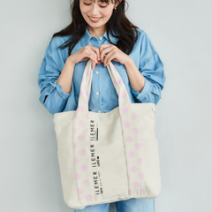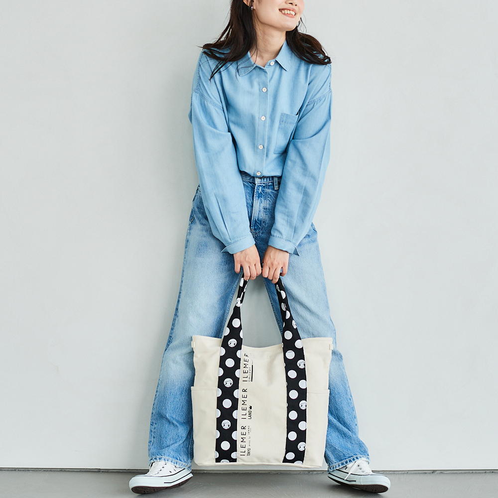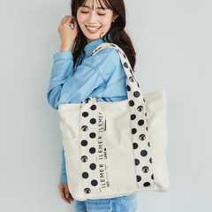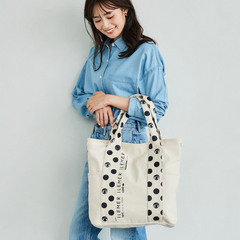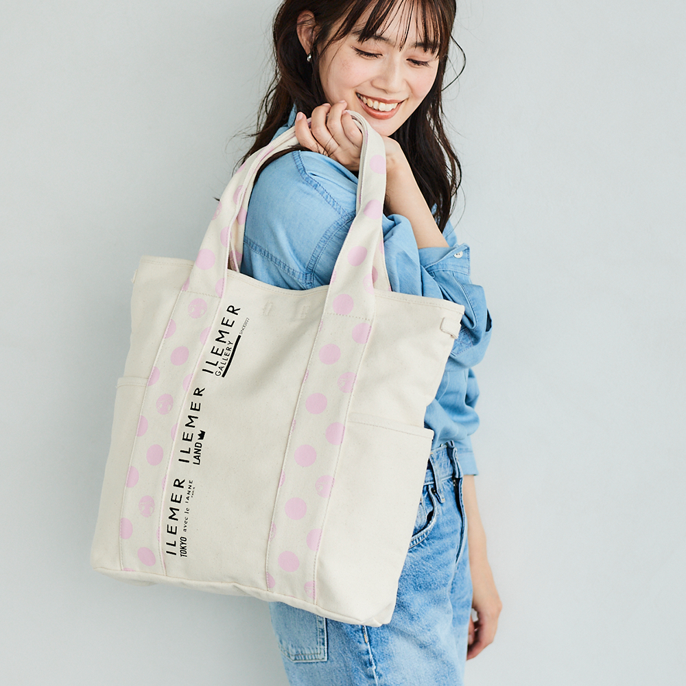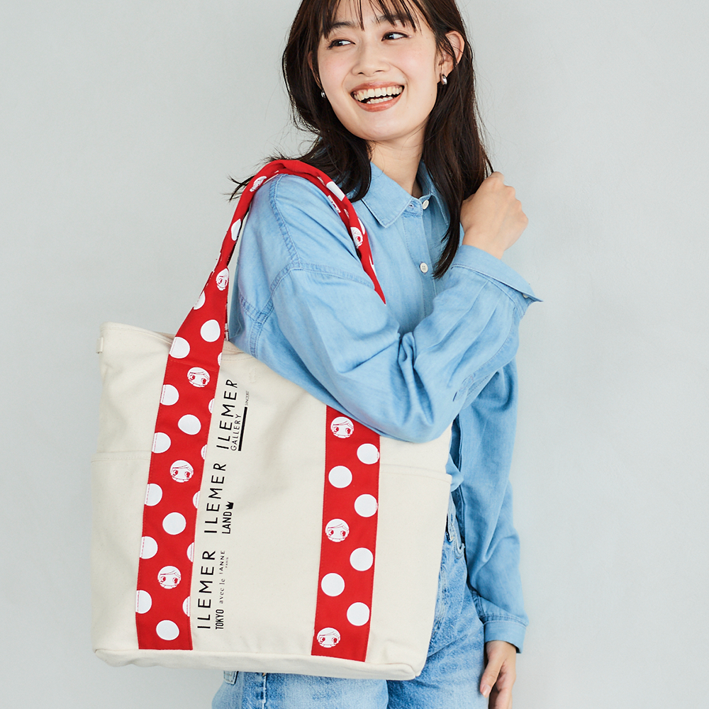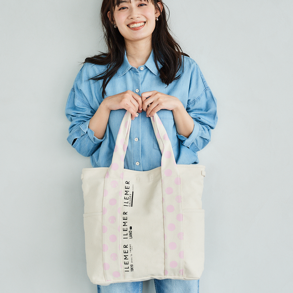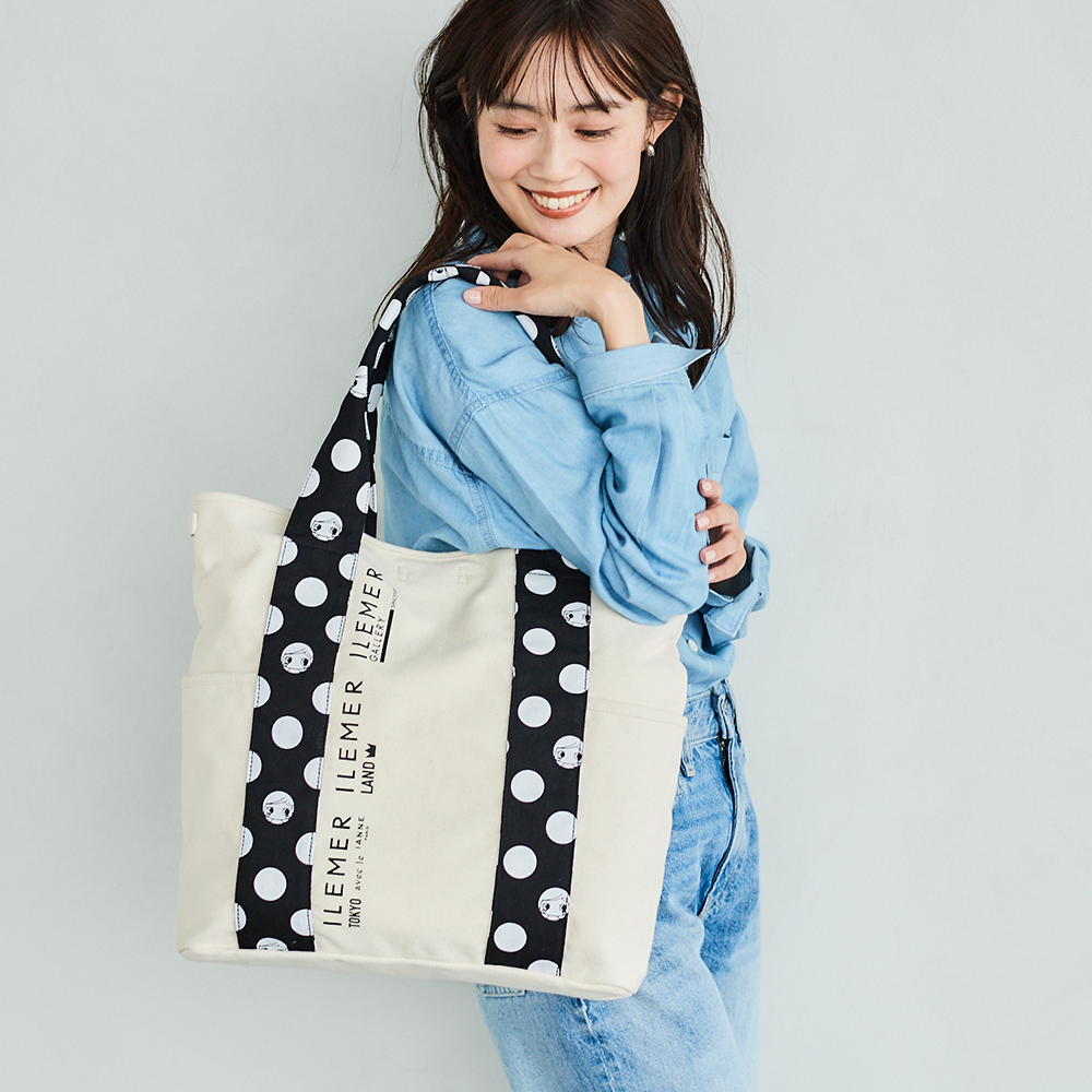 優しいナチュラルなキャンバス生地にドット柄ハンドルがポップに映えるILEMERらしいキャンバストート『KURUKURU』!