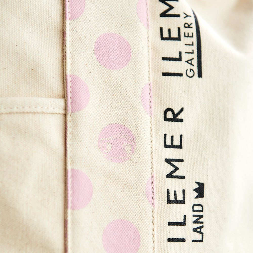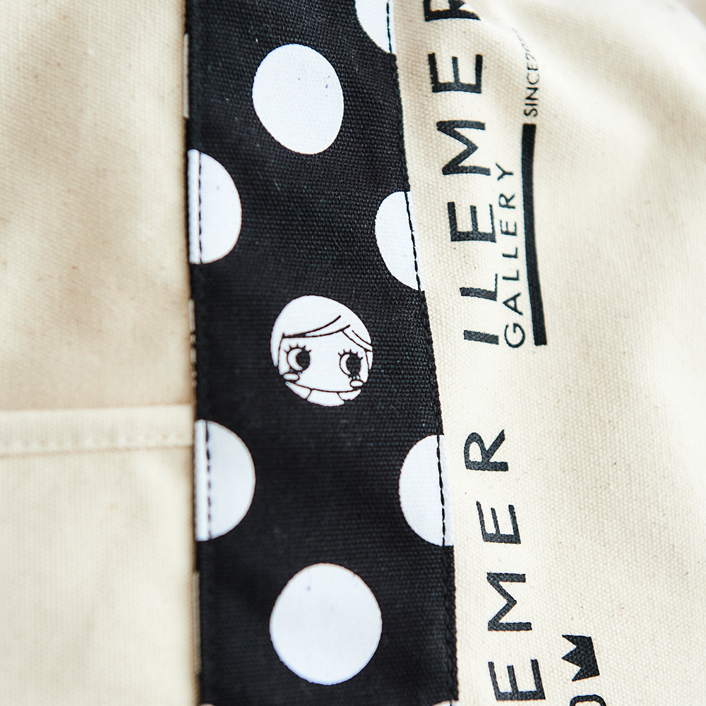 ドット柄の随所にはイーマリーちゃんのキュートなプリントにILEMERのショップロゴがスタイリッシュに映える大人可愛いデザイン♪
