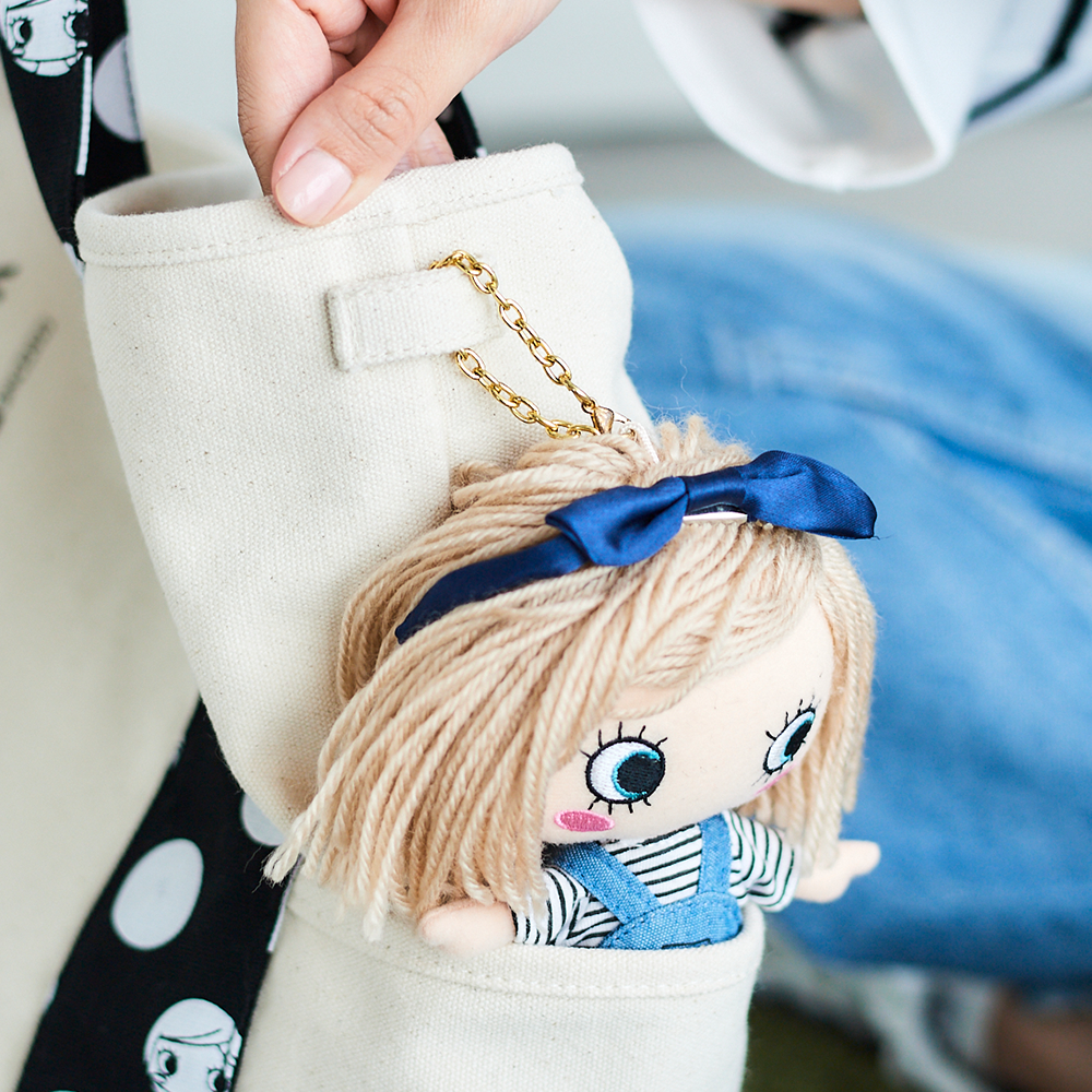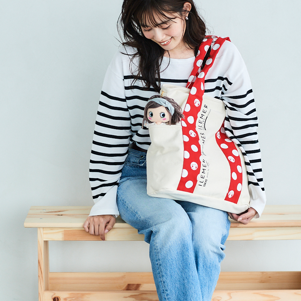 サイドのループにILEMERのバッグチャーム"ハッピードール"を取り付ければマイドールと一緒におでかけも楽しめます!