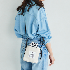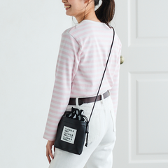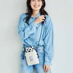 表側はポケットになっているので、直ぐに取り出したいスマホやリップなどをいれて、巾着部分にはお財布とコスメとハンカチと…このマストで入れたいアイテムはしっかり入る実用性と可愛さは正に理想型!!