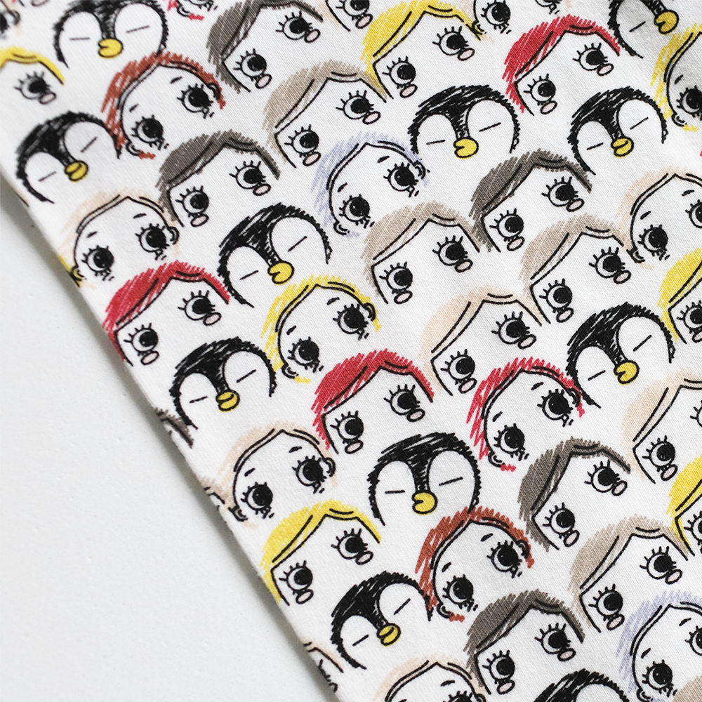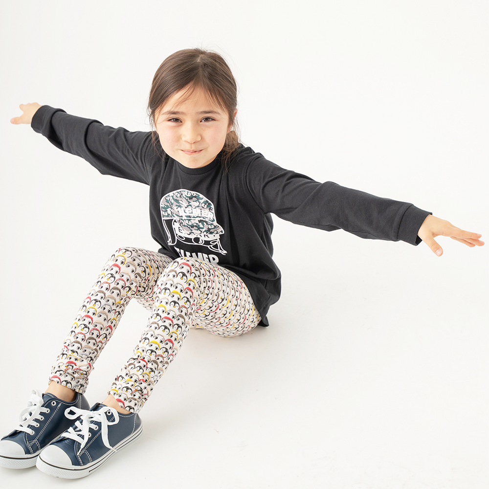 イーマリーちゃんを含めた五つ子ちゃんに、色とりどりのお洒落な髪色をしたイアンヌちゃん、とぼけていたり、ちょっぴり笑みを浮かべるKPが描かれたキュンでオシャレなレギンスです☆