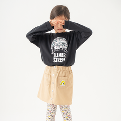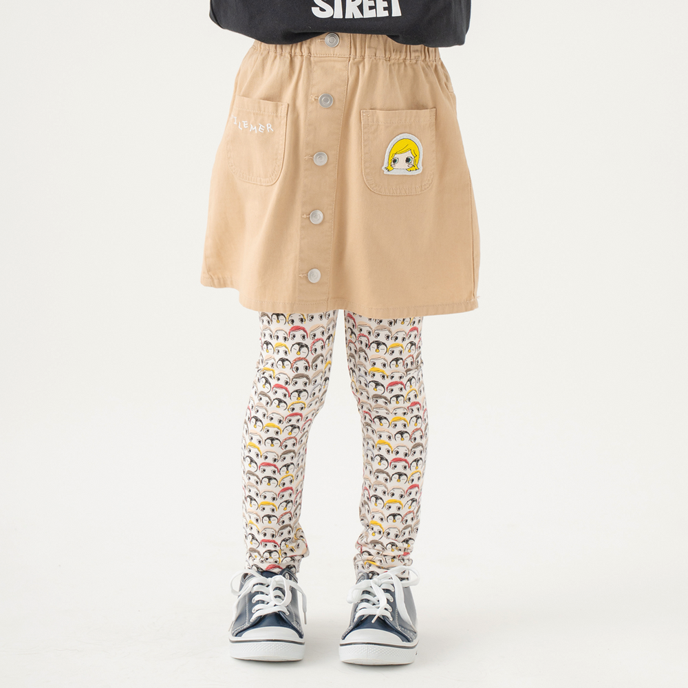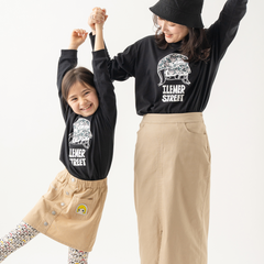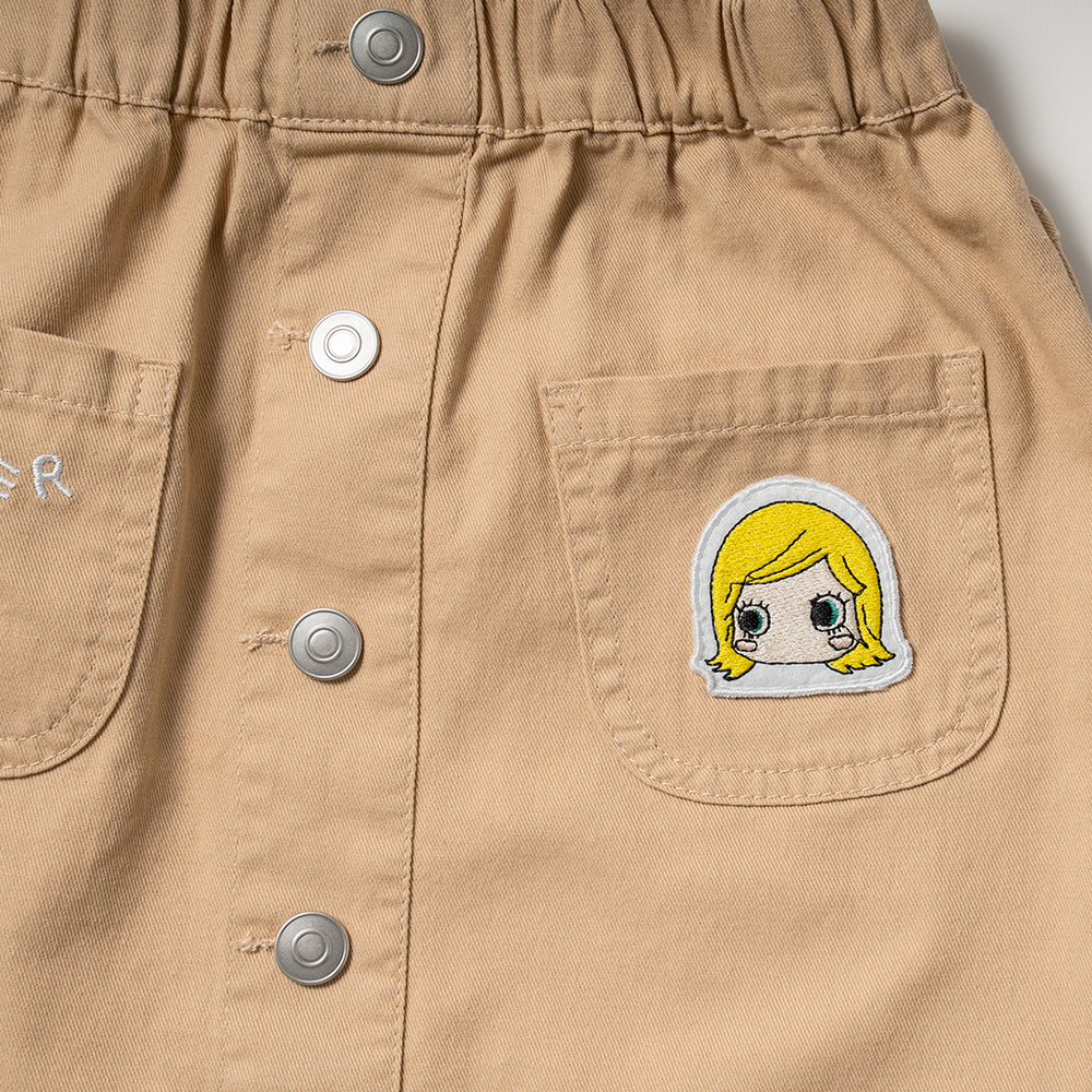 程よい伸縮性と柔らかい肌触りのツイル素材に、キュートな手書き風ブランドロゴとイーマリーちゃんがポッケにデザインされた【イーマリー刺繍ツイルスカート】♪