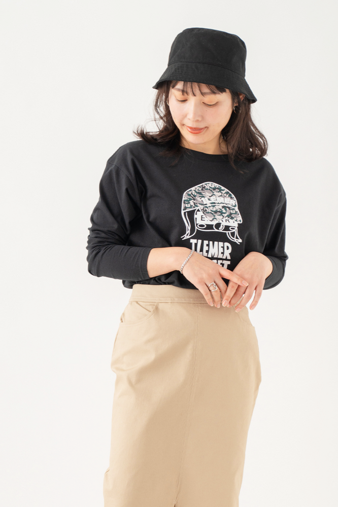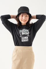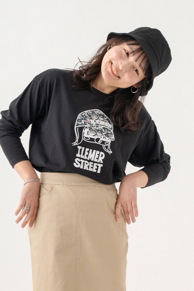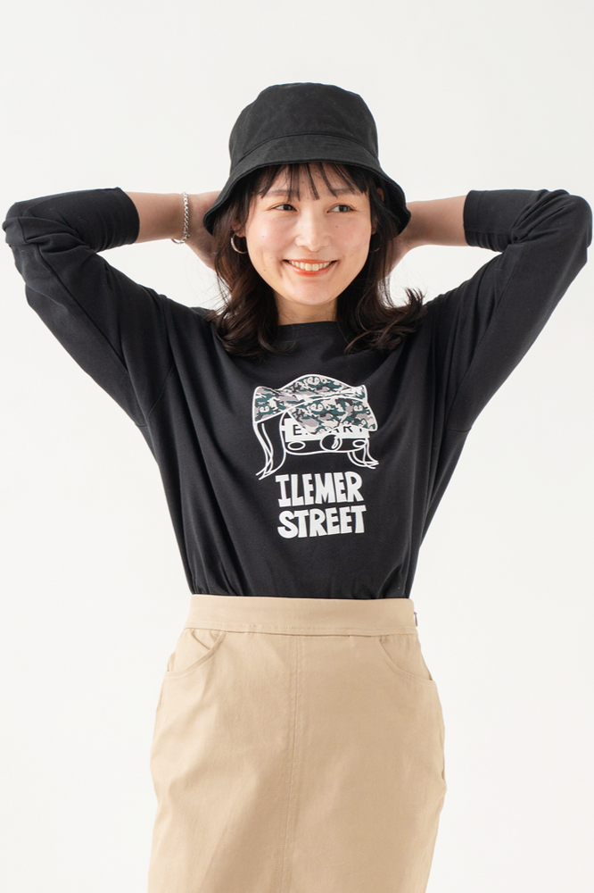 サングラスにキャップを深く被るイーマリーがハンサムな【イルメールストリート長袖ロンT】♪かっこよく決めたイーマリーをさらに盛り上げるべく、イーマリーの相棒でありいつもクール?なKPがキャップにデザインされています♪
