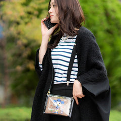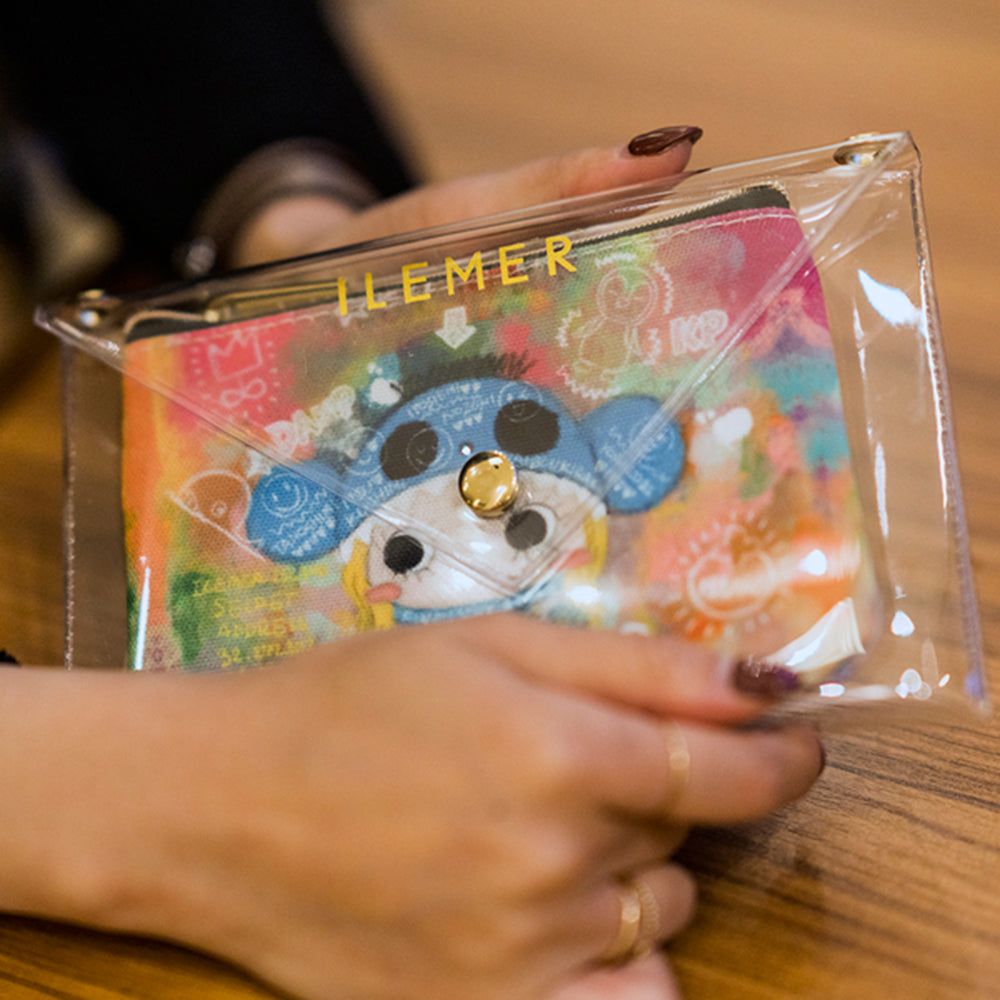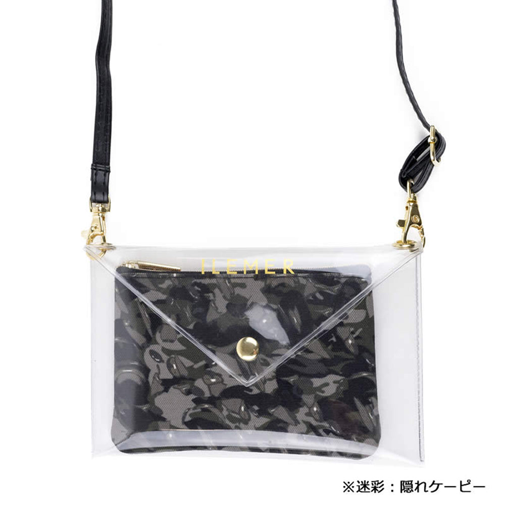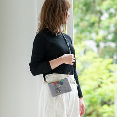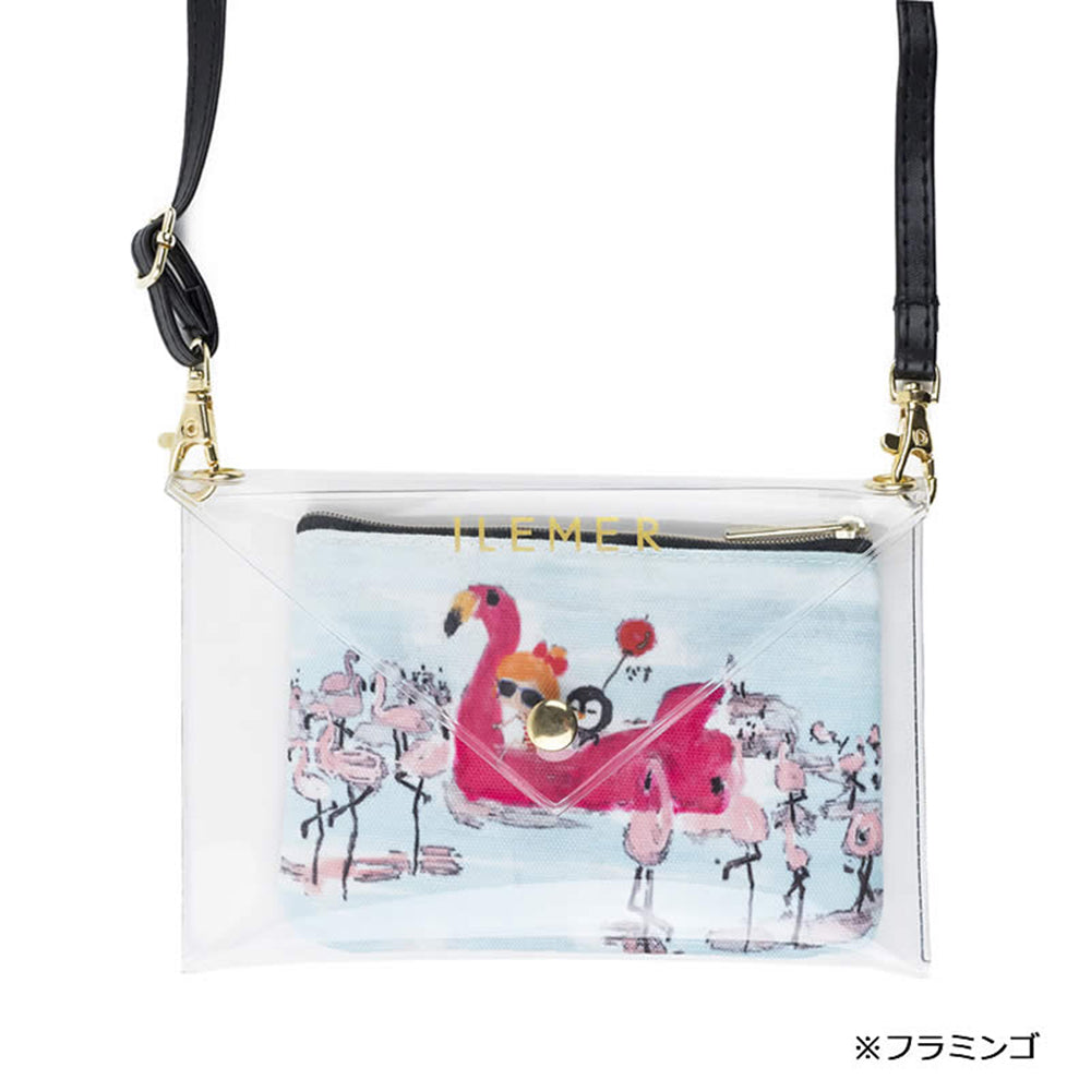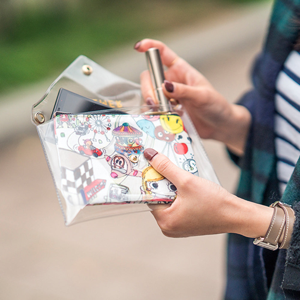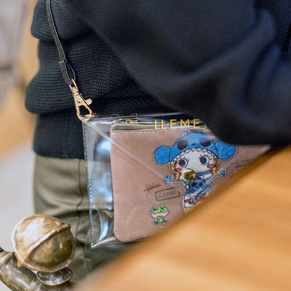 キャンバス地にプリントされたミニ財布と、撥水性、防汚性に優れたPVC(ビニール素材)がセットになったお財布ポシェット。ポシェットはちょうどスマホが入るサイズ※になっていますので、ちょっとしたお出かけならこれだけでOK♪