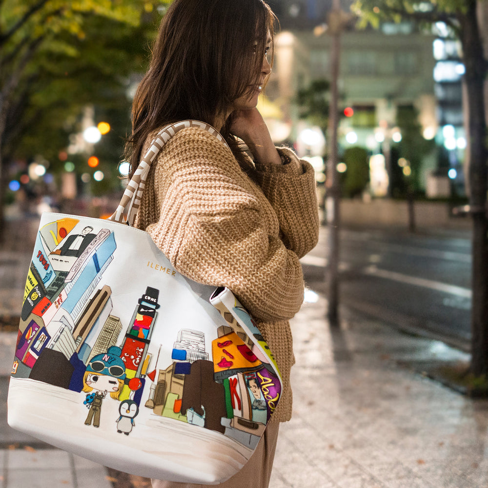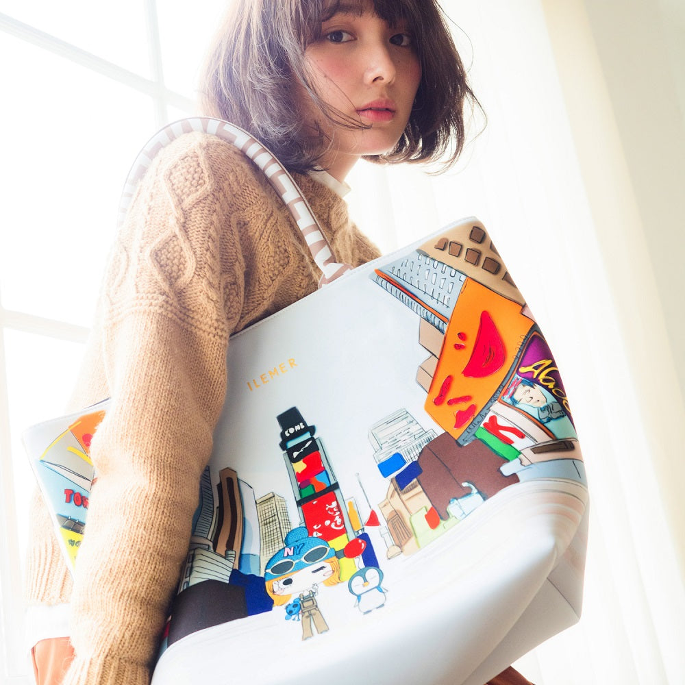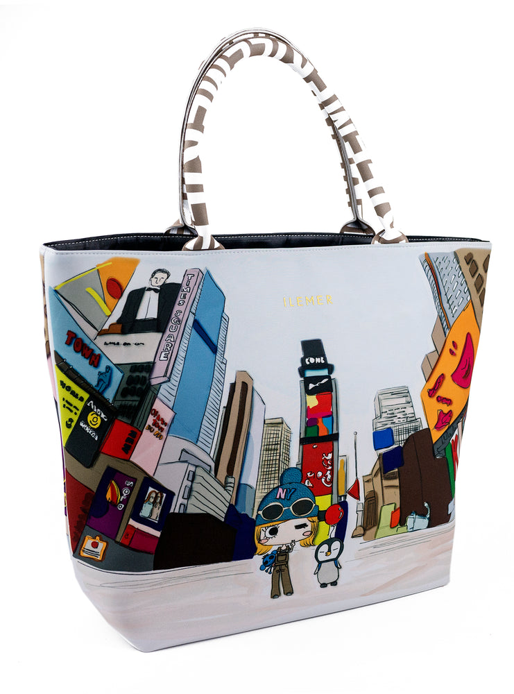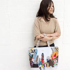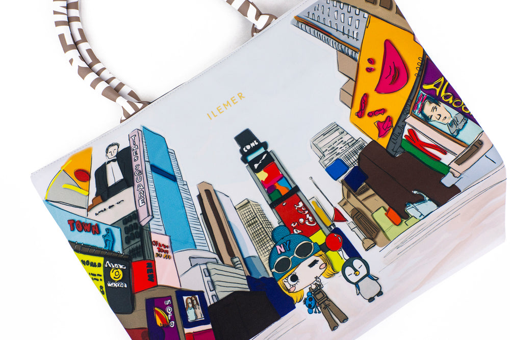 ニューヨークのタイムズスクエアをイメージして描いたイラスト。