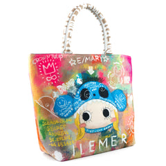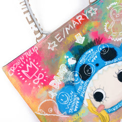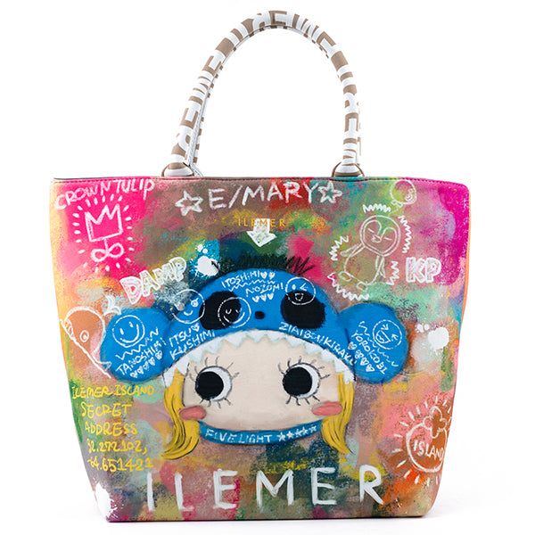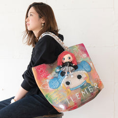 ブルックリンの壁にペインティングされたような背景に、キュートな着ぐるみのイーマリーちゃんが描かれた、まさにアートと呼ぶにふさわしい作品。